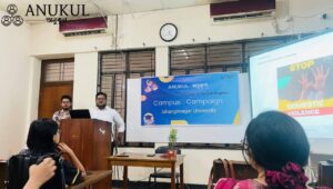 We are thrilled to share that ANUKUL successfully organized a powerful awareness session on domestic violence on 17th July (Thursday) at 𝐉𝐚𝐡𝐚𝐧𝐠𝐢𝐫𝐧𝐚𝐠𝐚𝐫 𝐔𝐧𝐢𝐯𝐞𝐫𝐬𝐢𝐭𝐲. The session was designed to raise awareness among students about the gravity of domestic violence and inspire them to take part in eradicating this social injustice.